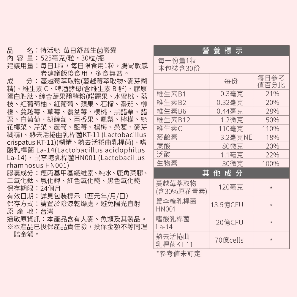 1申請資格:首次透過特活綠官方網站購買「莓日舒私密益生菌膠囊」,並加入官網會員和官方LINE@,每天1粒確實服用莓日舒,在吃完2週後若覺得產品不適合你,請在收到產品20日內(以簽收取貨日為準),向特活綠官方LINE提出退費申請,我們會協助您於7~14個工作天內完成退款手續(退貨運費需自付)。